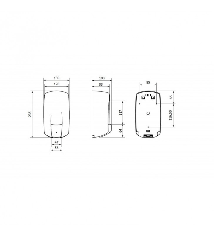 Ce distributeur est muni d'un réservoir transparent, se qui permet un contrôle sur le niveau du gel/savon.