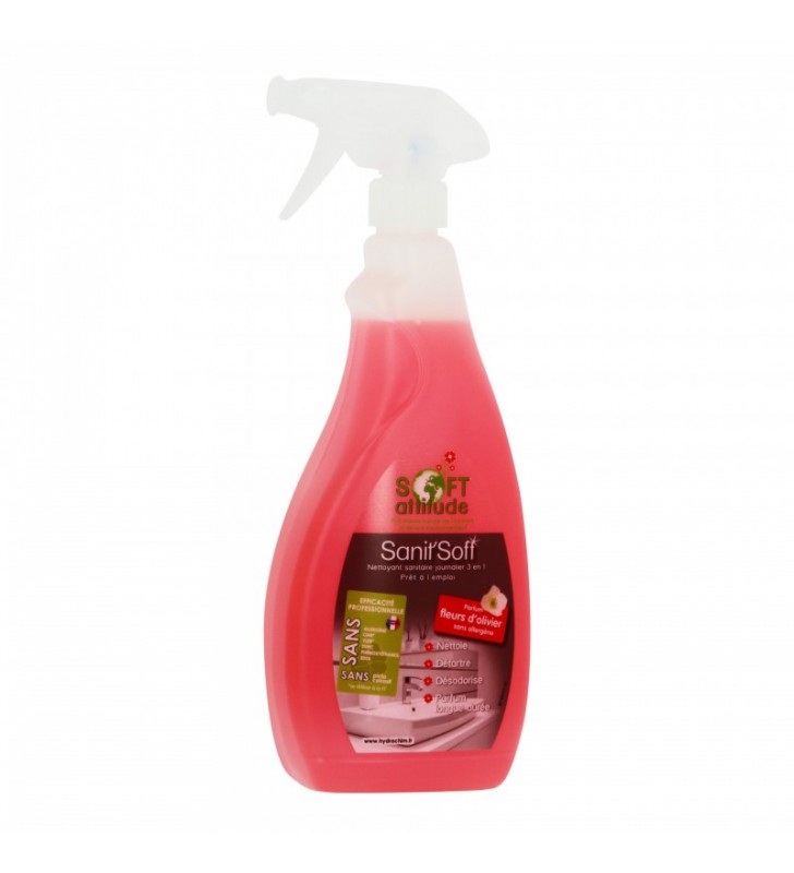 Sanit’Soft est un détartrant sanitaire désodorisant prêt à l’emploi qui nettoie et élimine le calcaire efficacement. Il est conçu pour nettoyer et désodoriser les baignoires, lavabos, vitres de douches, cuvettes de WC, et robinetteries.